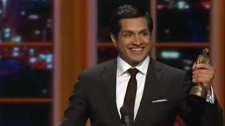 Sugar Sammy has impressed audiences with his unilingual, bilingual, and quadrilingual comedy shows over the past year. Now he's been honoured with a pair of awards at the 15th annual Olivier prize ceremony, including being chosen by the public as Quebec's star of the year. Sugar Sammy's show En Francais SVP won the award for best comedy performance of the year -- but it was actually the only one of his many shows debuted last year which was eligible. As Sugar Sammy (real name: Samir Khullar) picked up the award, he thanked his allo- and anglophone audience with several words in English "Guys, I'm in! Time to take over." The Olivier ceremony, which honours Quebec comedians who perform in French,...